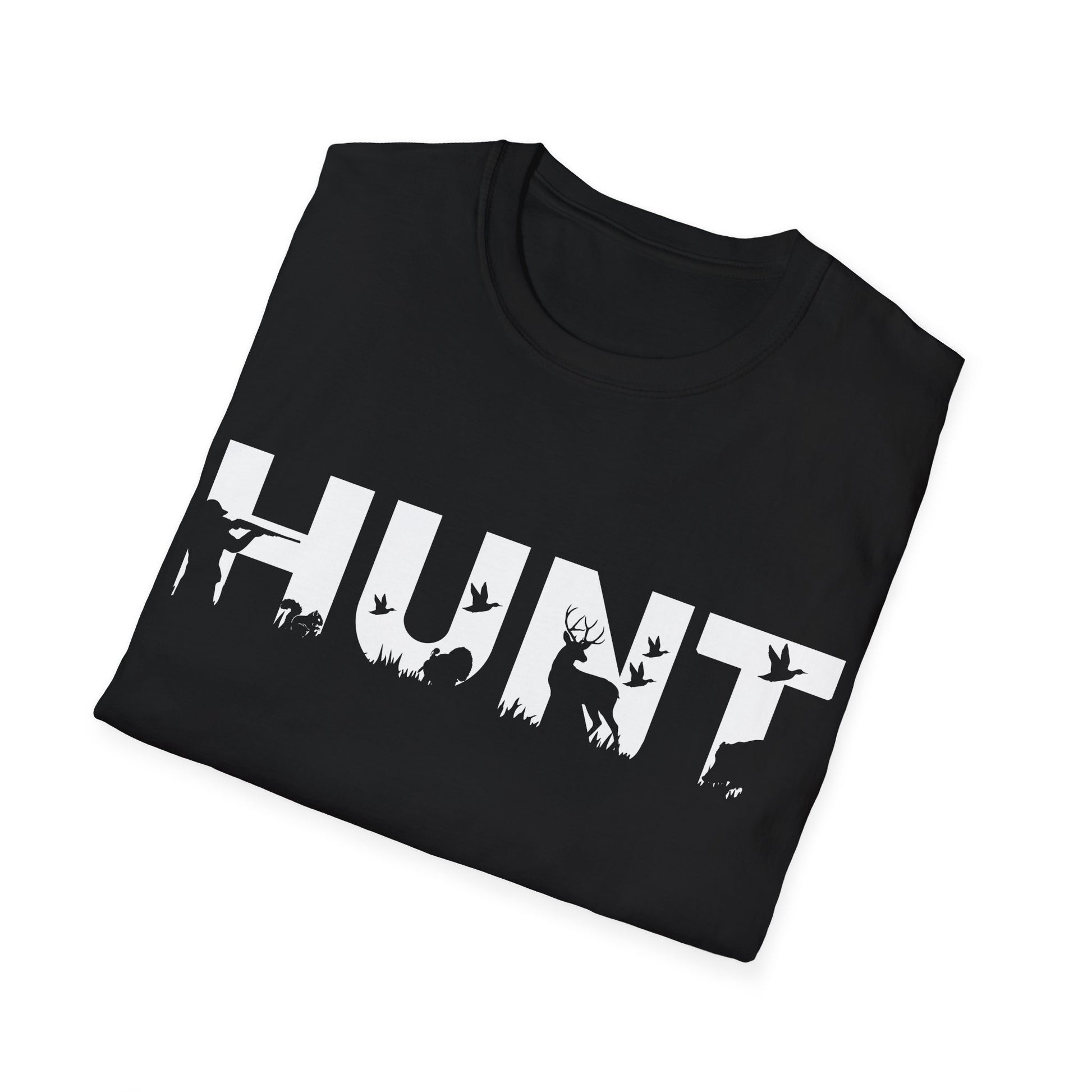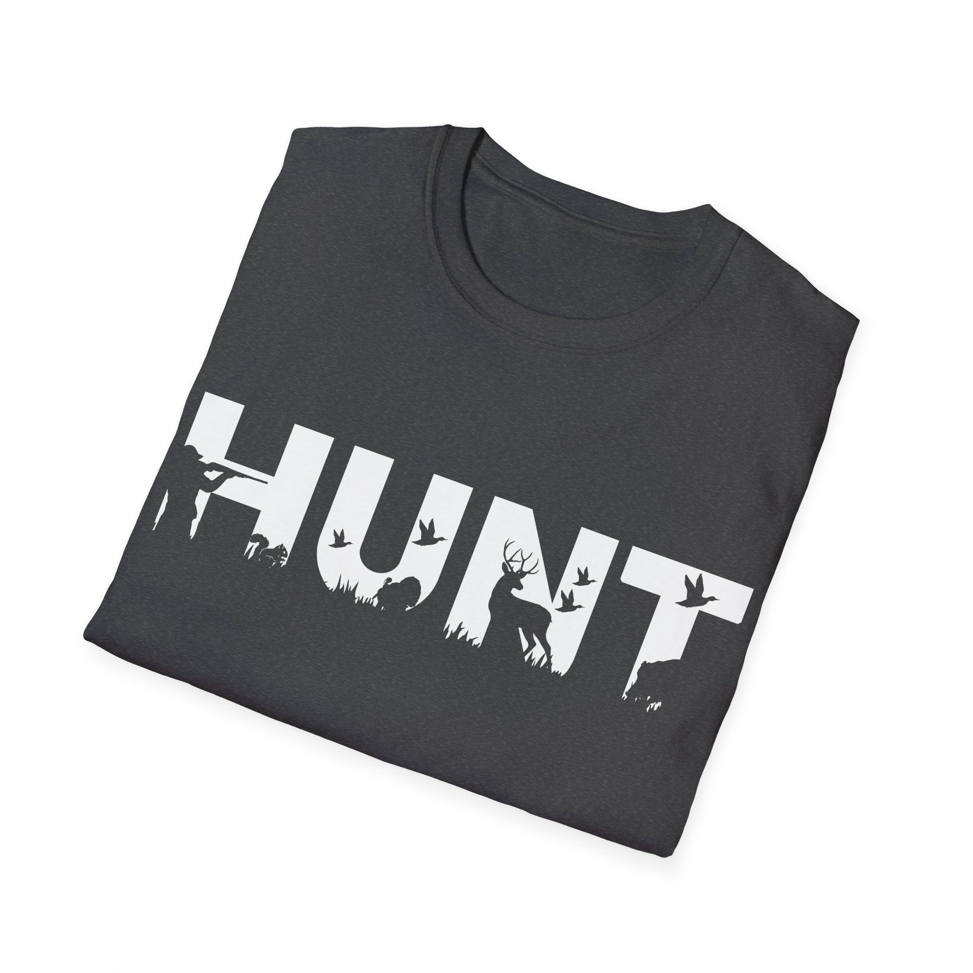 Elevate your everyday style with this versatile Unisex Gildan Softstyle T-Shirt. Crafted for maximum comfort, this classic-fit tee features a smooth and durable fabric that feels like a dream against your skin. Whether you're lounging at home or out in the woods, it effortlessly adapts to any occasion. The unique 'HUNT' design adds an adventurous touch, making it perfect for nature lovers and outdoor enthusiasts. I